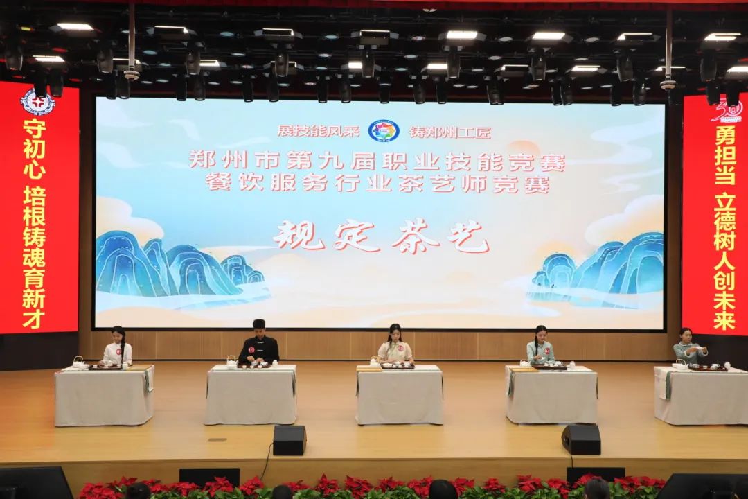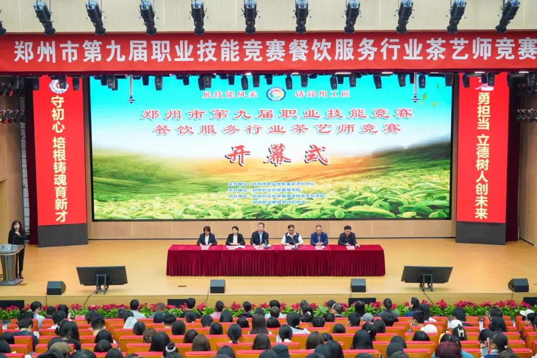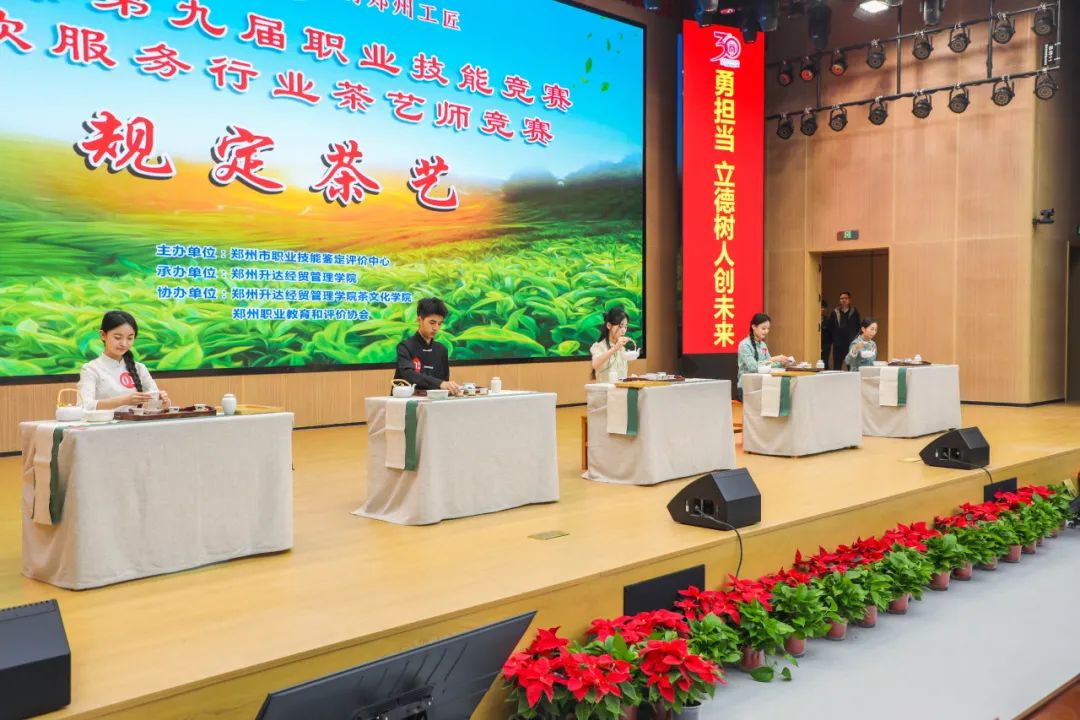 茶人茶客共叙风雅,茶香茶韵相得益彰。为进一步传承优秀传统文化,弘扬茶文化,2023年11月4日,由郑州市职业技能鉴定评价中心主办,郑州升达经贸管理学院承办,郑州升达经贸管理学院茶文化学院、郑州职业教育和评价协会协办的郑州市第九届职业技能竟赛餐饮服务行业茶艺师竞赛在郑州升达经贸管理学院隆重举行。