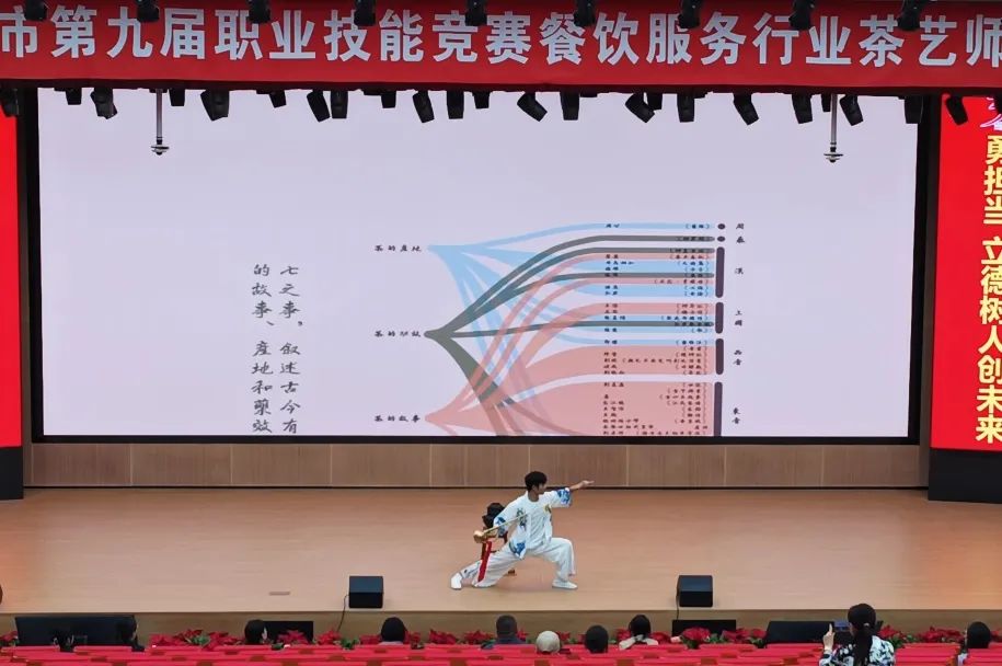 本次大赛分为理论知识竞赛、技能操作竞赛(规定茶艺赛项、点茶操作赛项、茶汤质量比拼赛项、自创茶艺赛项)。茶艺项目是以中国茶道精神为指导,以泡好一杯茶和呈现茶艺之美为目的,通过择水选器与水温、茶水比、浸泡时间等参数的科学设计与调控,充分展示茶的色、香、味、形等性状,强调茶汤质量和泡茶过程完美结合的竞赛项目。