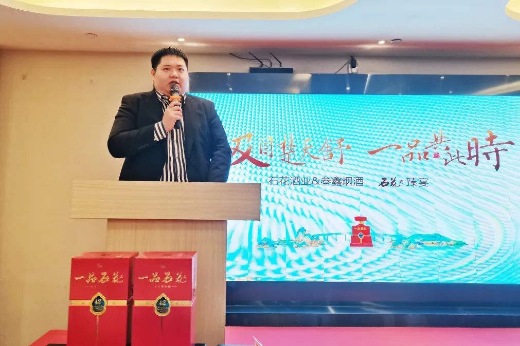 11月4日,湖北石花酒业&叁鑫烟酒“一品石花酒酩尊鉴赏会·臻宴”在武汉芝兰御宴成功召开。湖北石花酒业营销管理总部武汉大区见习总监叶立鑫,江北品级硚口办事处见习经理陈练,湖北石花酒业合作伙伴龚杰与武汉区域各位消费者把酒言欢,共享美味佳肴,共品石花佳酿!