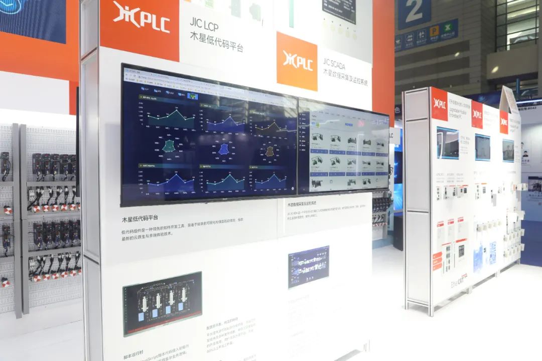 华龙讯达的木星PLC在展区内提供了众多新产品展出:可用于自动化领域的工业自动化控制技术、采用龙芯3A5000指令集处理器的具有高算力的超紧凑型工业 PLC(JIC PLC);可用于工业 PC 的新型操作系统;实现控制512轴伺服驱动自动化解决方案;完整的系统集成式机器视觉解决方案; 通过PLC控制模型实时驱动仿真模型的数字孪生解决方案;基于云端配置实现实时数据采集解决方案;集成模型驱动多环境应用的低代码解决方案,以及采用5G技术的机器人协同作业输送系统解决方案。