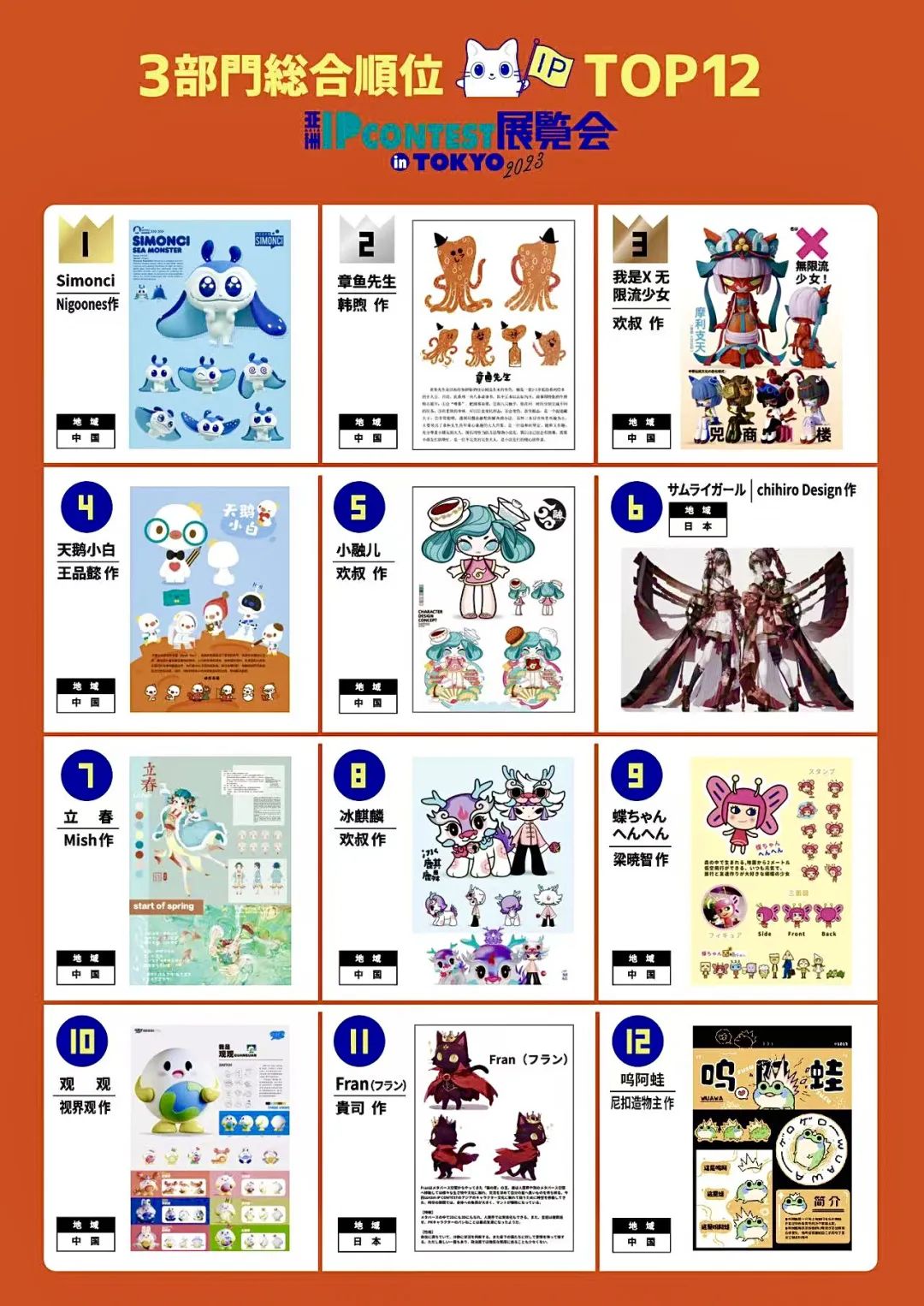 在最终评获的TOP12位IP形象作品里