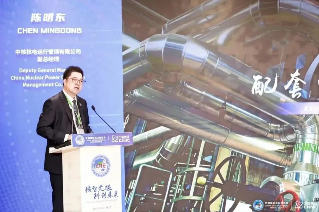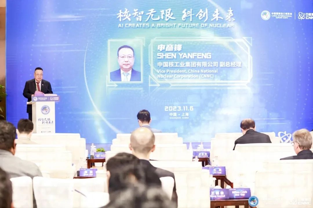 11月6日上午,第六届中国国际进口博览会(以下简称进博会)期间,中核集团在国家会展中心(上海)举办“核智无限 科创未来”主题论坛并开展集中采购签约。秦山核电同位素生产基地亮相进博会,展示了助力“健康中国”建设的中核方案、秦山方案。活动邀请国内外权威专家、机构、合作企业,采用主旨演讲和主题沙龙的形式,共同推动人工智能与核技术应用深度融合,探讨未来发展新路径,打开产业发展新空间,为人工智能加速核技术应用可持续发展提供坚实基础。本次活动邀请毛里求斯共和国驻华大使王纯万,科摩罗联盟驻华大使毛拉纳·谢里夫,佛得角共和国驻华大使阿林多·多罗萨里奥,国家会展中心(上海)有限责任公司副总裁宋尚哲,发展中国家科学院院士、国际欧亚科学院院士、国务院参事石勇院士,上海市核电办主任、党组书记陆海宾,希腊、汤加等多国相关机构官员、合作企业有关领导,上海交通大学、东华大学等多位专家及学者,中国核学会、核能行业协会有关领导。中核集团党组成员、副总经理申彦锋出席论坛并致辞。