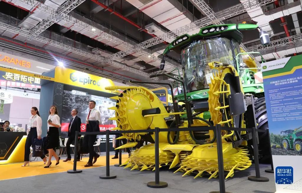 参观者在第六届进博会上经过约翰迪尔公司推出的8600机型青贮收割机展品。方喆 摄Khách tham quan đi ngang qua sản phẩm triển lãm máy gặt đập 8600 của Công ty John Deere tại Hội chợ Nhập khẩu Quốc tế Trung Quốc lần thứ 6. (Ảnh: Phương Triết chụp)