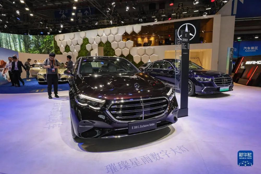 在第六届进博会汽车展区,梅赛德斯-奔驰全新长轴距E级车E300L轿车迎来中国首展。辛梦晨 摄Trong khu vực triển lãm ô tô của Hội chợ Nhập khẩu Quốc tế Trung Quốc lần thứ 6, mẫu sedan trục cơ sở dài E-Class E300L hoàn toàn mới của Mercedes-Benz đã ra mắt triển lãm lần đầu tiên tại Trung Quốc. (Ảnh: Tân Mộng Thần chụp)