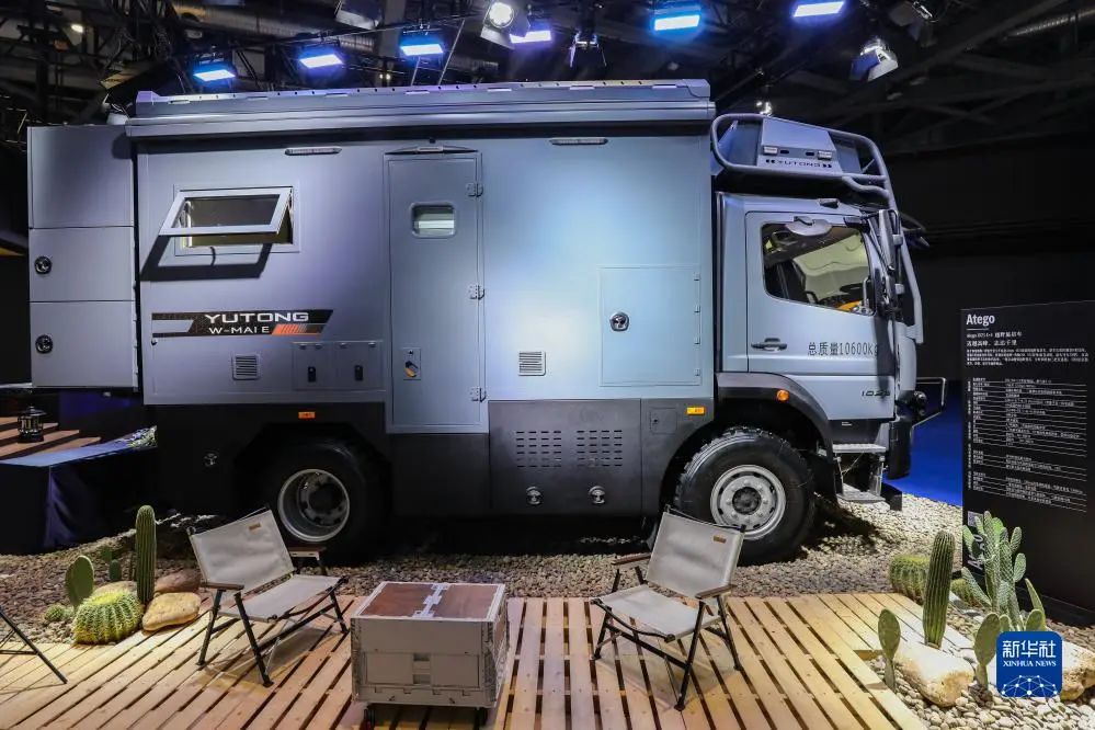 在第六届进博会汽车展区,奔驰Atego 1023 4x4越野旅居车迎来中国首展。辛梦晨 摄Trong khu vực triển lãm ô tô của Hội chợ Nhập khẩu Quốc tế Trung Quốc lần thứ 6, mẫu xe du lịch việt dã Atego 1023 4x4 của Mercedes-Benz đã ra mắt triển lãm lần đầu tiên tại Trung Quốc. (Ảnh: Tân Mộng Thần chụp)