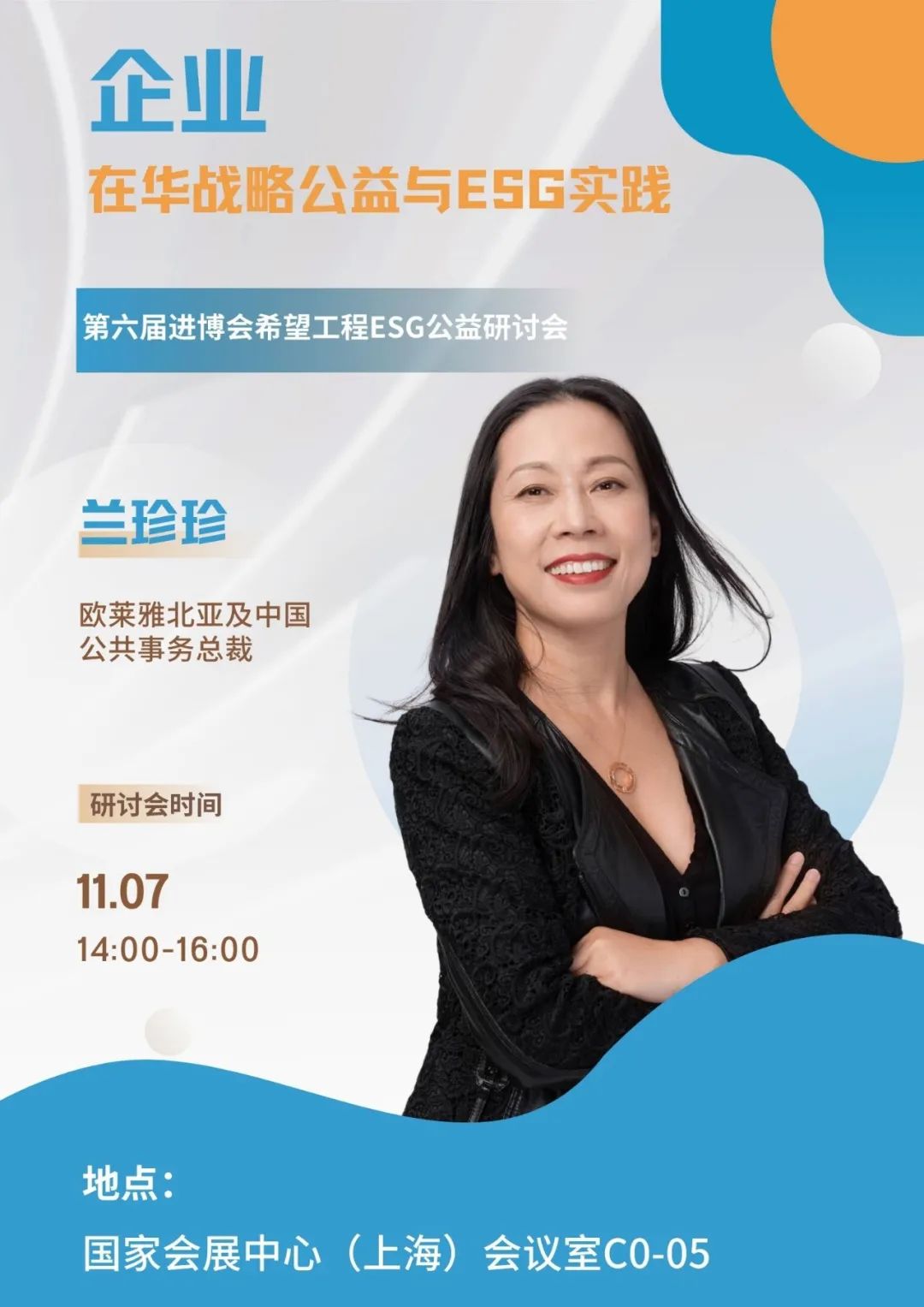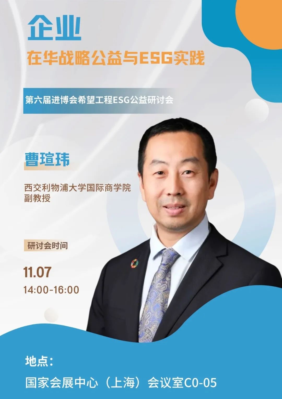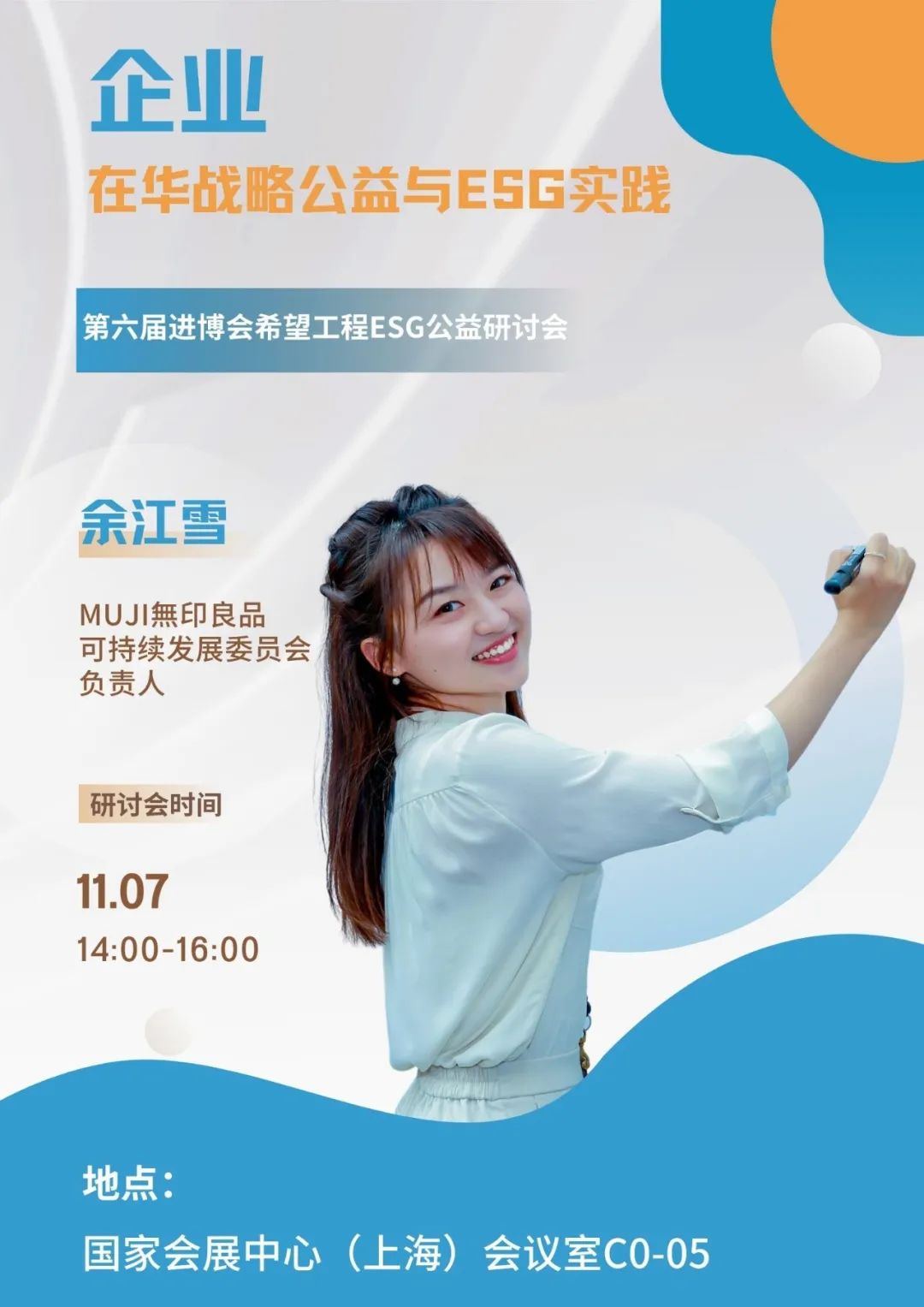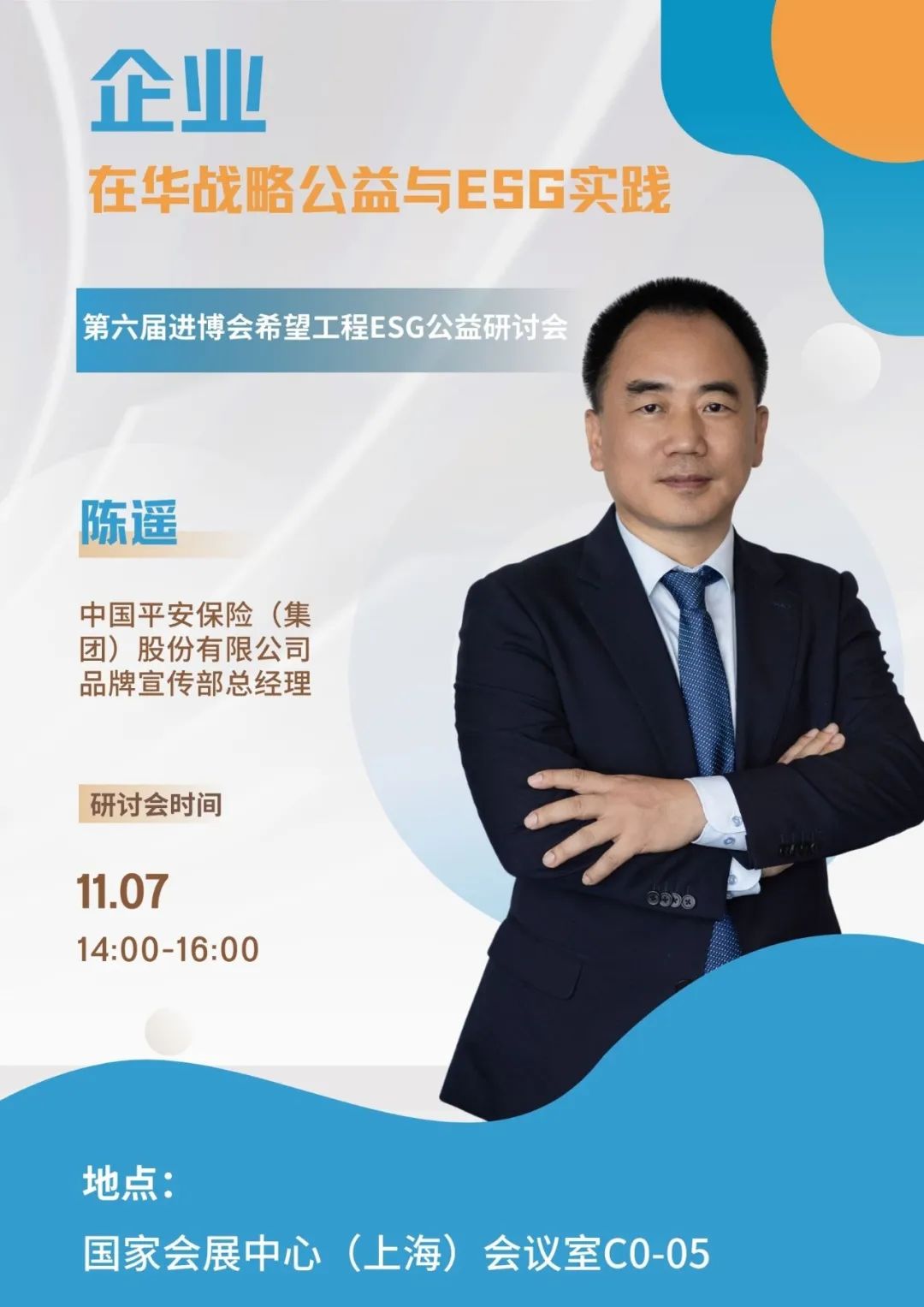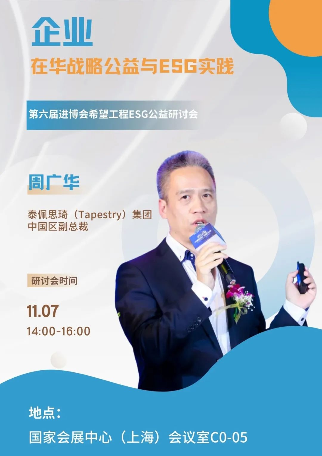 11月7日(明天),中国青基会将举办“第六届进博会希望工程ESG公益研讨会”(会展中心会议室C0-05),通过主旨演讲、战略公益与ESG管理的价值连接、圆桌讨论展示中国青基会联合世界知名企业在华ESG实践,倡导进博会参展商在中国积极履行社会责任和可持续发展。