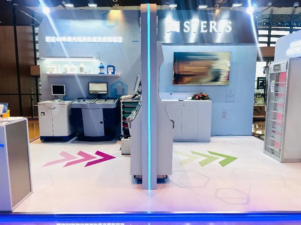 作为拥有40多年内镜再处理及感控经验的领导企业,史帝瑞医疗多年来引领行业的技术革新,为客户提供一流、先进的产品和服务,产品涵盖内镜再处理全流程。本次展台设计模拟了内镜清洗区内的污染区和洁净区,借鉴了全球公认的最佳洗消实践,通过建立物理隔断进行洁污分区,在不同区域内分别展示了ADVANTAGE PLUS全自动内镜清洗消毒机、ADVANTAGE PLUS