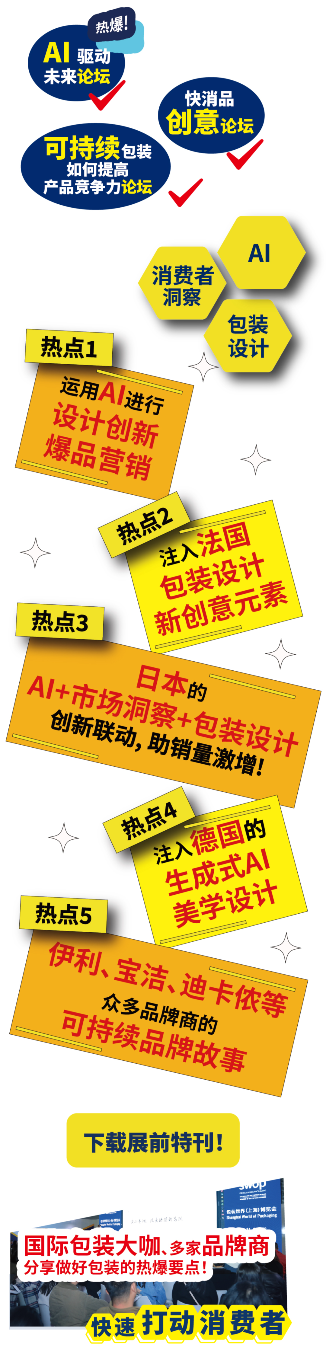 今年, swop将为包装行业人士带来众多行业高光话题, 包括【国际化包装热点】、【AI提升销量】、【减重减量】、【适度包装】、【可持续新材料】、【食物接触包材新法规】、【智能化与数字化】,并探索如何在包装设计和生产中应用创新的解决方案!
