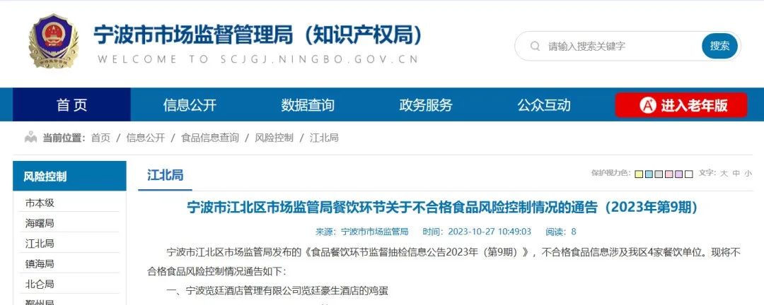 以及,近日宁波市江北区市场监督管理局也发布食品安全餐饮环节监督抽检信息通告(2023年第9期),内容显示,宁波览廷酒店管理有限公司览廷豪生酒店的一批次鸡蛋检出甲硝唑(不得检出)。