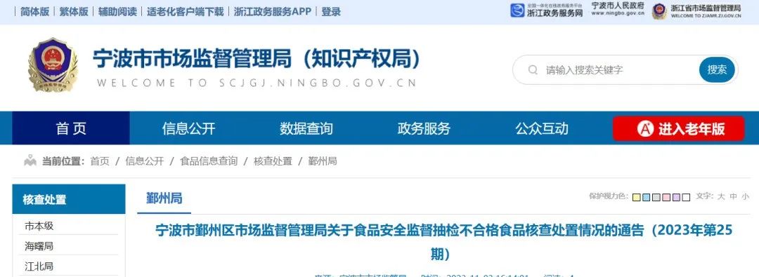 日前,浙江省宁波市鄞州区市场监督管理局近日发布关于食品安全监督抽检不合格食品核查处置情况的通告(2023年第25期),涉及11家经营单位11批次食品不合格,其中,宁波外婆家餐饮有限公司鄞州印象城第三分公司因销售的鸡蛋不合格被罚款1万元。