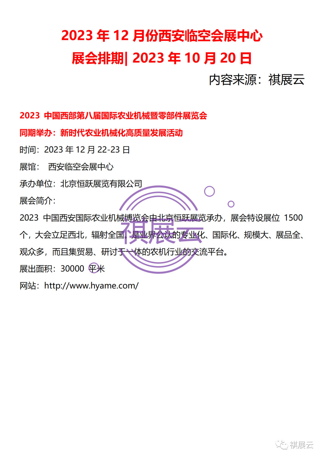 2023年11月份郑州国际会展中心展会排期| 2023年9月20日