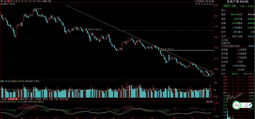 光伏的观点很明确,在行情没有企稳回升之前,一切都是假象,今日的光伏产业指数在20日均线下方震荡,这种震荡的持续效果不明显,只有等后期日K线站稳20日均线,且20日均线拐头向上以后再去考虑低吸做加法,现在就继续等着。