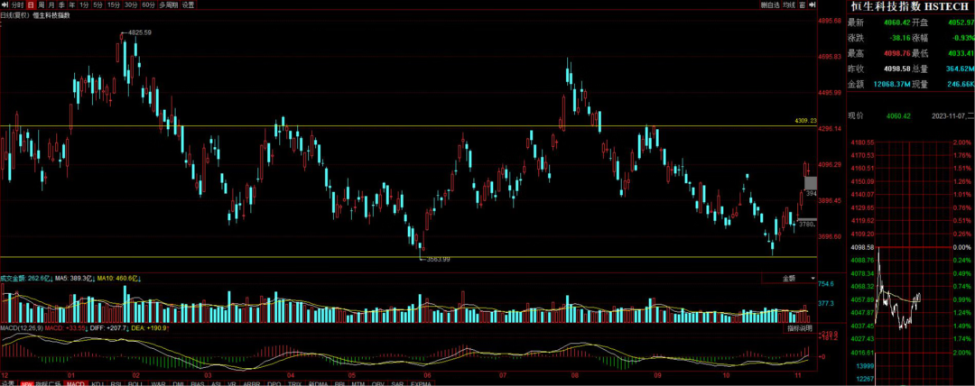 恒生科技指数行情分析: