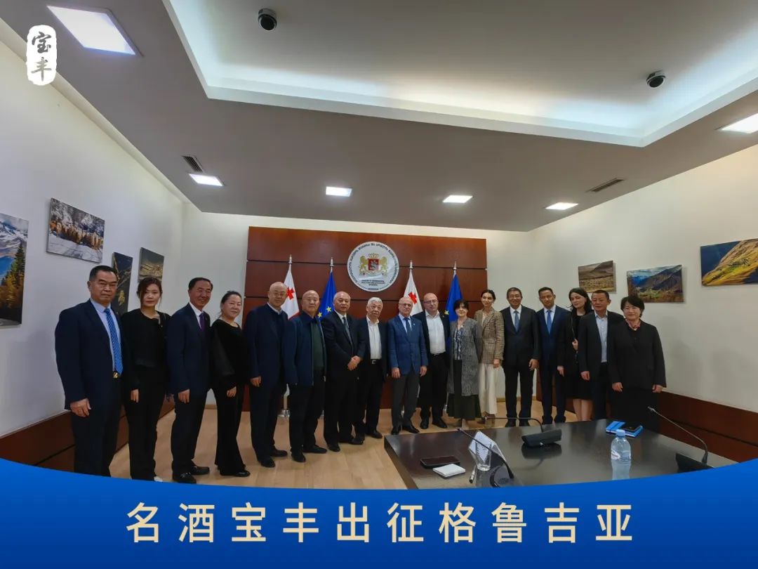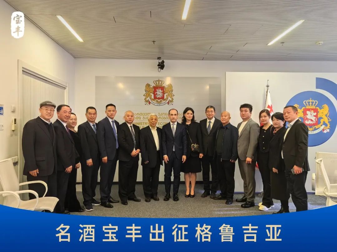 10月19日——10月28日,受格鲁吉亚国家葡萄酒局邀请,由中国酒类流通协会常务副会长刘员,中国酒类流通协会副秘书长、零售及连锁专业委员会常务副会长兼秘书长赵禹,中国食品发酵工业研究院研发总监黄宇彤等行业领导带队的中国酒类官方考察团,赴格鲁吉亚参加第四届第比利斯丝绸之路论坛,同时就中格酒水贸易进行考察交流。宝丰酒业有限公司副总经理兼首席品牌官许英杰、宝丰酒业销售公司总经理张伟皓、宝丰酒业销售公司副总经理潘玉宾等领导受邀随团参观考察。