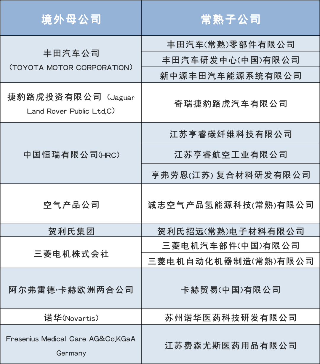据统计,今年与常熟相关联的参会母公司企业共计9家,对应在常熟投资的子公司数量达14家,产品领域集中在:汽车、技术装备、消费品、医疗器械及医药保健等,充分契合常熟近年来大力发展的新兴产业方向,也展现出常熟在相关领域的实力。