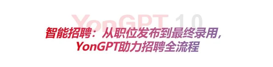 随着市场整体环境的变化,企业需要快速适应新的业务发展,就需要敏捷的人才策略作为支撑,这对企业招聘寻才、网才的能力提出了更高的要求,Conversationl AI式智能招聘正在成为企业新的宠儿。用友基于YonGPT的智能招聘通过强大的自然语言处理和机器学习能力,极快助力企业在拓展陌生领域的招聘执行流程,加速招聘过程,保证招聘效果。帮助企业快速精准识别定位目标人才,从海量简历池中发现人才,通过AI互动优化应聘体验,实现选人、用人的精准决策。