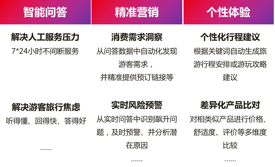 YonGPT可为游客提供7*24小时不间断的智能问答服务,以及游前、游中、游后的全旅程陪伴。平台拥有强大的知识库,可利用语音交互快速解答游客在旅途中的各类问题。YonGPT通过智能分析,能够识别游客潜在需求,主动推送相关旅游信息或产品建议。平台还具备快速预警功能,在出现旅游投诉激增时,可及时提醒企业采取应对措施。YonGPT的应用将大幅提升游客的体验,也为文旅企业提供了更智能化的客户服务手段,为文旅行业智能化升级带来更多可能性。
