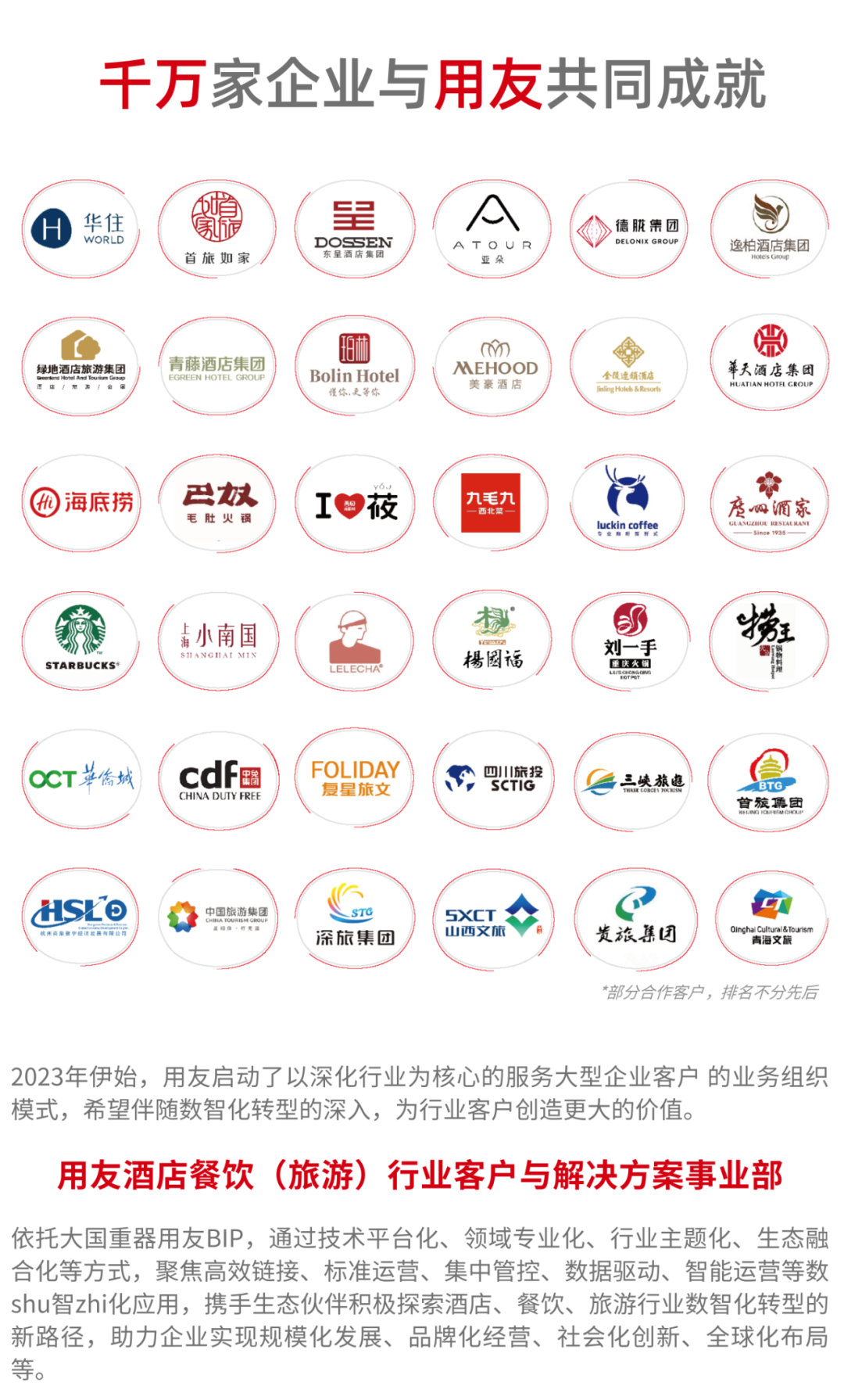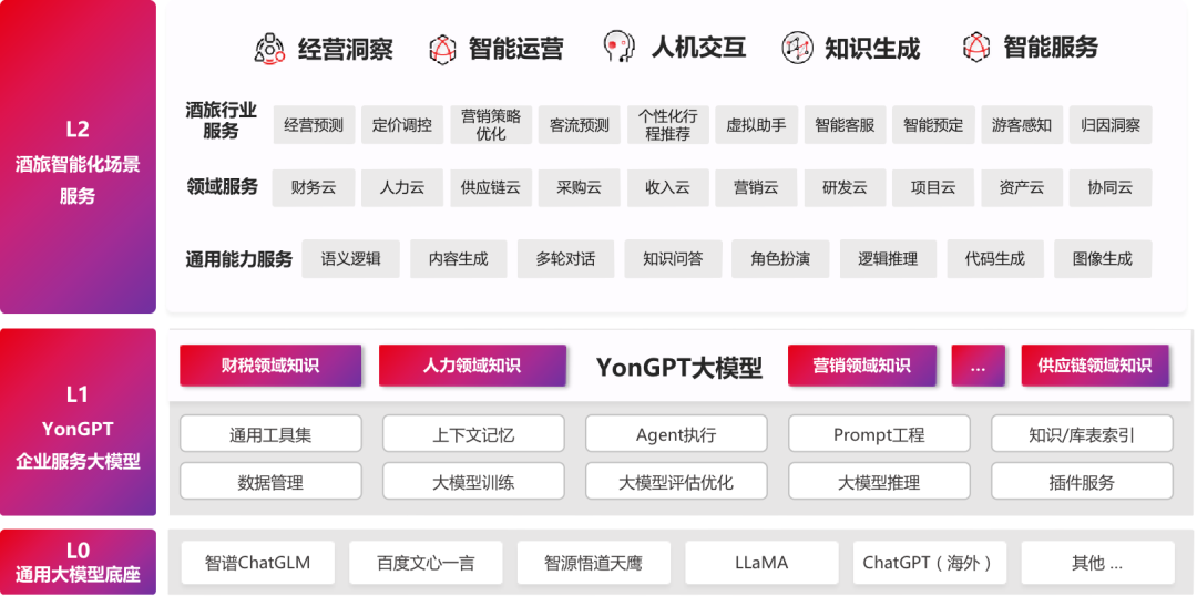 依托用友BIP,YonGPY 1.0在酒店、餐饮、旅游行业,已经可以满足渠道分销洞察、智能报告生成、应收账款智能预警、游客行程规划、食材供应商智能推荐、客梯智能报修、门店拓建预算智能分析、前台智能排版、景区承载优化、游客行为感知、客诉飙升智能预警等多个细分领域场景。后期也将继续迭代训练,不断丰富行业企业服务场景,帮助企业更好地把握市场机会、应对挑战,实现持续盈利和可持续发展!