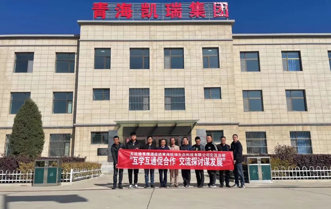 10月28日上午,天佑德青稞酒公司营销中心海东大区总监刘鹤财,营销中心行政部部长赵国维一行4人走进青海凯瑞集团,开展以“互学互通促合作 交流探讨谋发展”为主题的交流活动。青海凯瑞集团办公室主任吴少波,厂长徐汉伟全程陪同参观交流。