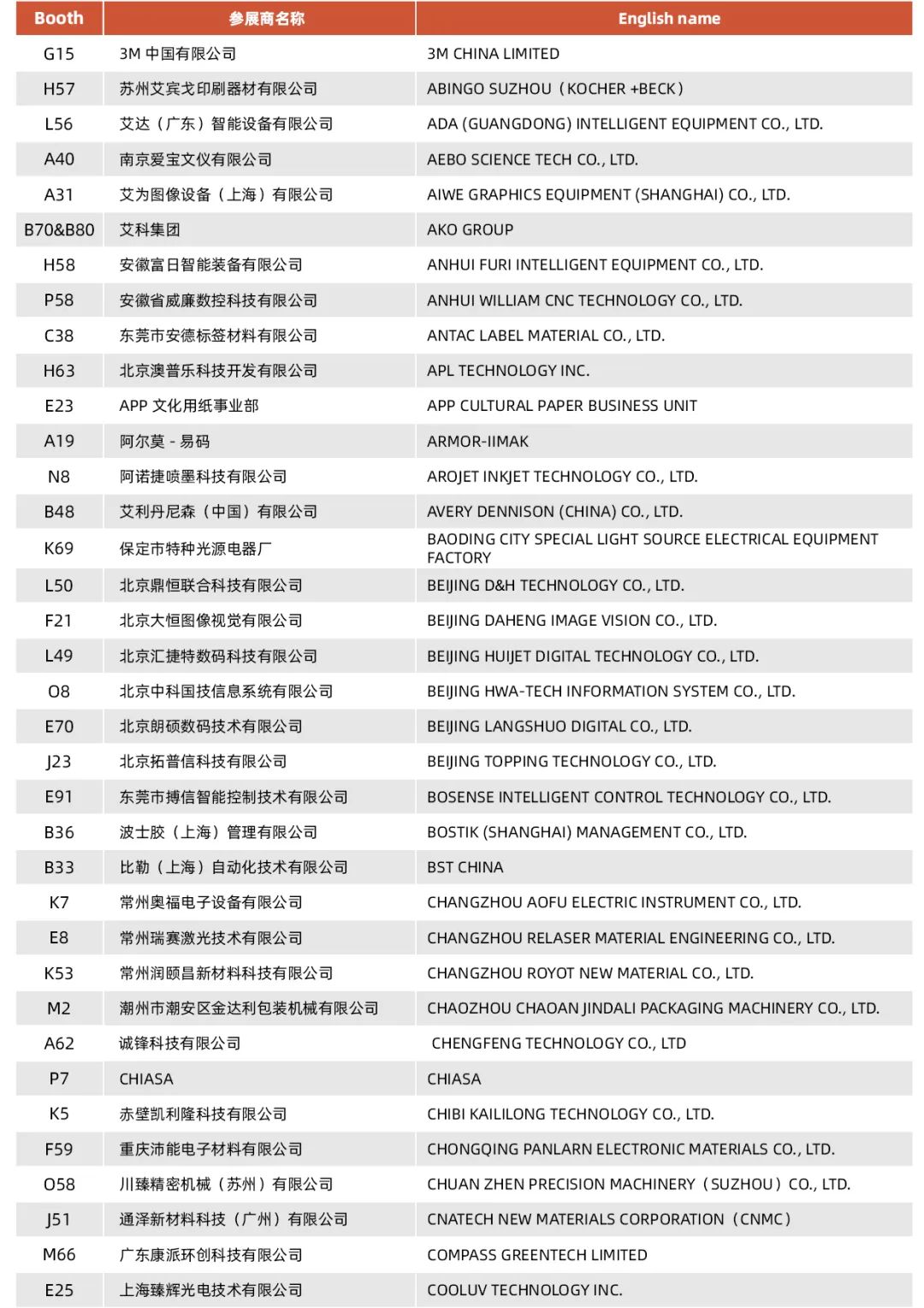 1. 展会官网>>展商名录(https://www.labelexpo-asia.com.cn)直接下载PDF版《参展商名单》