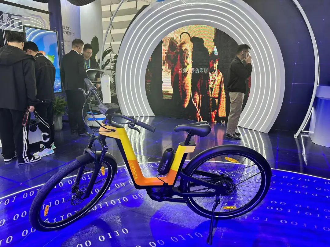 桐乡馆内,两辆碳纤维造的自行车十分吸睛,不仅可以通过调节档位提速,还能通过与自行车相关联的APP实现导航、听音乐、语音交互等功能。