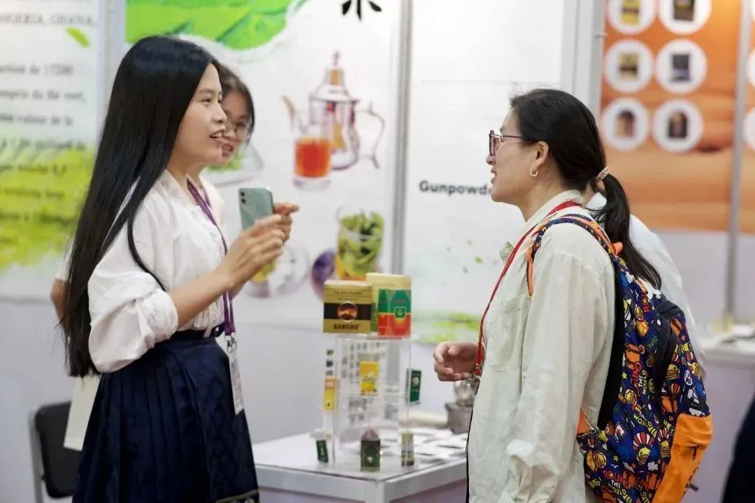 展会期间我们诚挚地邀请世界各地的茶商茶友们莅临新安发茶业展位品茗洽谈。我们带来了一系列优质的产品:珍眉41022、 4011 、9371,珠茶 3505等,其中沙漠玫瑰(41022)广受国内外客商的青睐,很多外商更是慕名而来。展台上独具特色的产品和缭绕的氤氲茶香吸引了大量国内外采购商的一致好评。