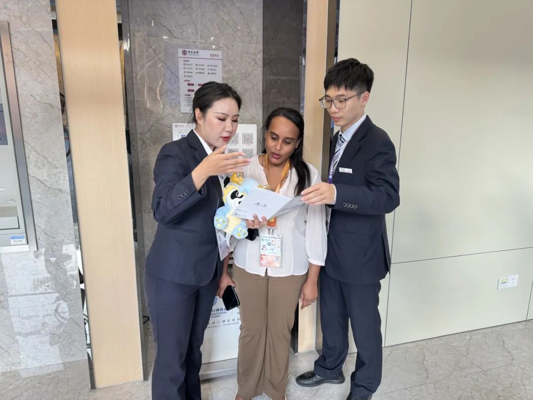 原来由于路途遥远,行程紧张,这名坦桑尼亚的展商只兑换了少量的人民币,因此,在本届进博会开展的第二天,待展台相关工作稳定后,便当即来到中国银行办理汇兑业务。