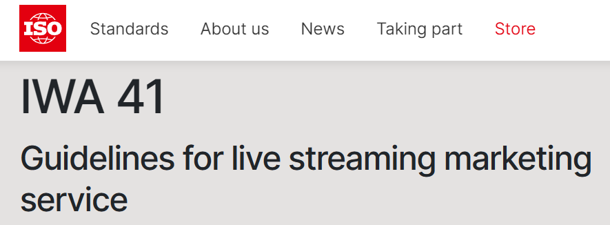 ISO/IWA 41《直播营销服务指南》国际标准将于2023年11月27日发布。该标准对直播主持人、直播营销平台、直播营销人员和MCN机构在开展直播营销服务过程中的服务流程和运营管理提供了指引,适用于参与直播营销服务的各方。