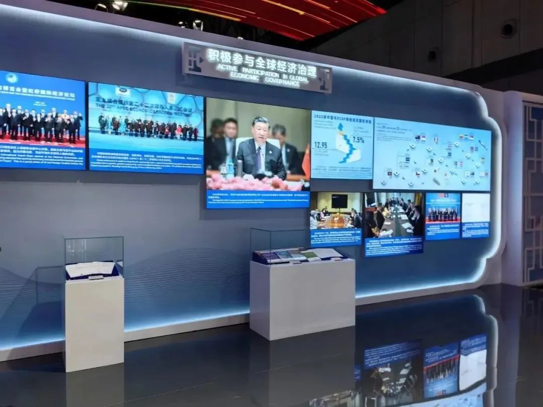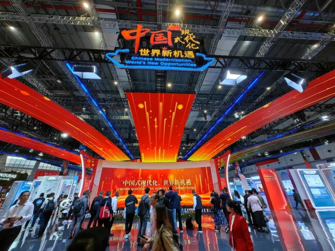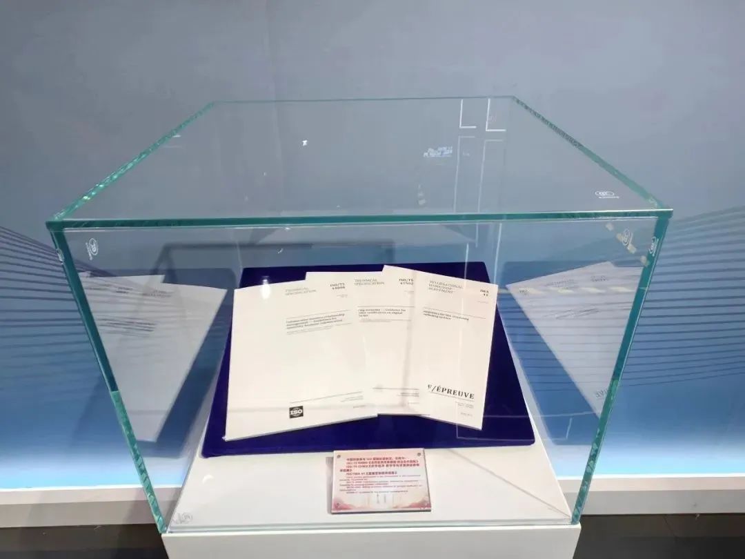 作为世界上第一个以进口为主题的国家级展会,进博会自2018年举办以来,积极联通中国和世界,国际采购、投资促进、人文交流、开放合作四大平台作用不断增强,全球共享的国际公共产品属性更加彰显。在每届进博会的国家综合展里均设置中国馆。今年中国馆总展览面积由此前的1500平方米增至2500平方米,规模创下历届之最。展台整体设计风格以中国红为主色调,惊艳大气。展区内分为五大板块,其中第三大板块为“中国式现代化新成就为世界发展提供新机遇”。在该展览板块的“积极参与全球经济治理”部分,以实物形式展示了三项由中国牵头制定的国际标准,包括ISO/TS 44006《合作业务关系管理 校企合作指南》、ISO/TS 42502《共享经济 数字平台资源提供者审核指南》和ISO/IWA 41《直播营销服务指南》。