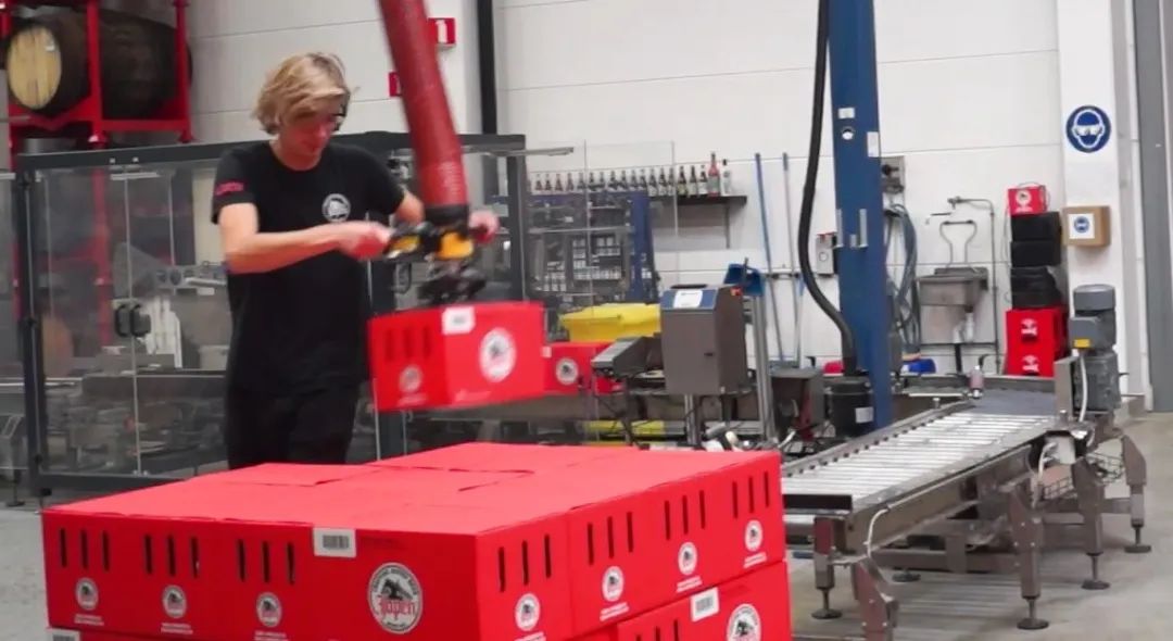 强大的吸盘:这些助力机械手配备了强大的吸盘,可以可靠地吸附各种包装物品,如啤酒瓶、包装箱等。