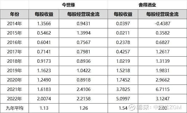 点评:每股收益和每股经营现金流,舍得酒业平均强于今世缘。