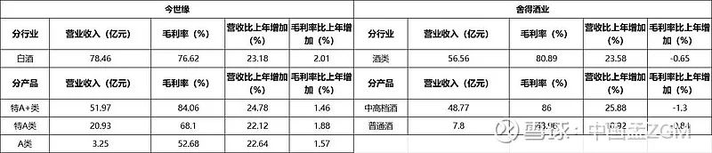 点评:舍得酒业的“中高档”白酒的毛利率最高,达86%,总体酒类毛利率也稍高于今世缘。