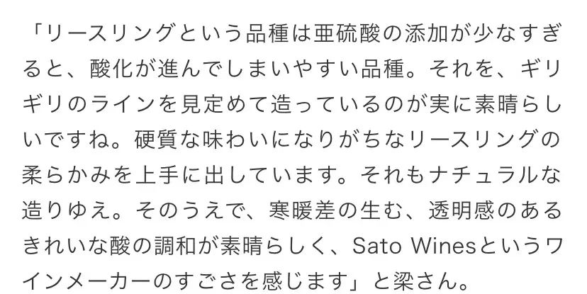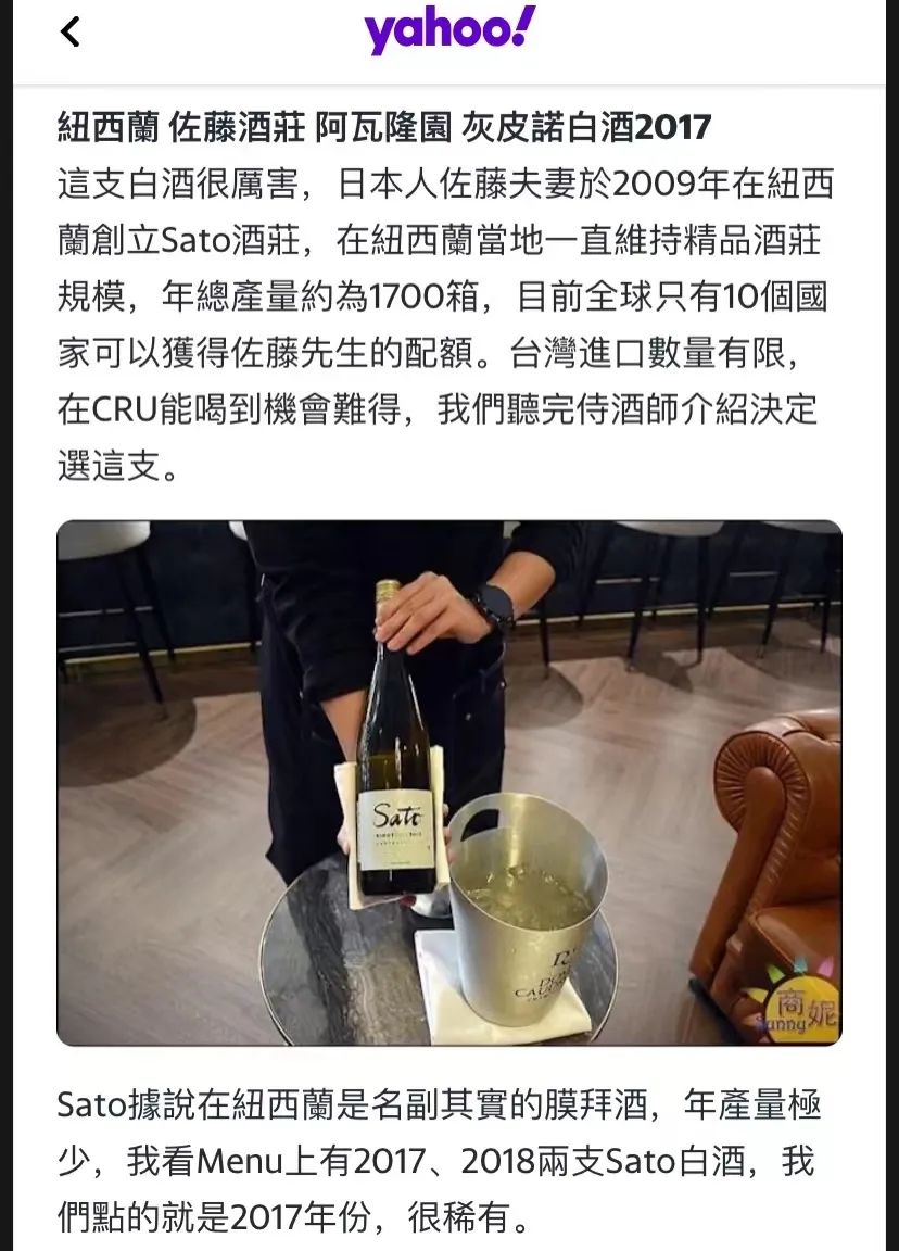 一说到当今令全球富豪疯狂的美酒,那绝对非勃艮第葡萄酒莫属,疫情期间更是涨价到连老富们都开始怀疑人生,而要说到日料的巅峰那非新派寿司之神Saito莫属,而近些年日本竟然出现了一个新派酒神,在日本的高级料理界知名度直逼Saito,而在日本葡萄酒界的地位甚至是堪比日本人酿的“罗曼尼康帝”,他就是日本的新生代膜拜酒神Sato!当然此Sato非彼Saito,but(但)被称作神的人都是相似的!Sato是日本酿酒师Yoshiaki Sato在新西兰酿造的葡萄酒,因为其师从当今全球富豪醉疯狂追捧的勃艮第名庄Bizot庄主Jean-Yves Bizot(勃艮第Bizot葡萄酒近4年来已经疯涨百倍,现在他家随便一个村级酒都能价格上万,地位直逼Leroy老太太)又因为酒庄在新西兰奥塔哥(世界前三的黑皮诺产地)的气候酷似法国勃艮第,所以酿造出的黑皮诺葡萄酒有着堪比勃艮第一线名庄的风味与实力!因此在日本的高端料理界成为了一颗冉冉升起的耀眼的“国货之光”,连世界五十大侍酒师之一,米其林东京三星餐厅【龙吟】侍酒师 梁世柱 对Sato评价道:“新西兰独特地理环境,温差产生的清澈和干净酸度之间的美妙和谐被Sato先生完美的体现了出来。”中国台湾地区Yahoo!评价其是很稀有的膜拜酒(指产量少,难以购买,深受高级酒客膜拜的葡萄酒)著名葡萄酒酒评家Janice Robinson形容他是新西兰具有“匠人精神”的日本酿酒师的代表2022年《亚洲五十大餐厅》评选中的第三位,东京新晋米其林三星餐厅Florilege也对其推崇有加日本酿酒师Yoshiaki Sato从东京早稻田大学毕业后,和妻子前往法国勃艮第就行深造学习,师从勃艮第近年来醉火酿酒师Jean-Yves Bizot,之后又在法国Alsace跟随自然酒大师Jean Pierre Frick学艺,最后自立门户,在考察了新西兰各产地的风土条件后,Sato夫妇最终决定留在新西兰奥塔哥开始他们的酿酒事业。中奥塔哥拥有新西兰唯一的大陆性气候,因为黑皮诺在这里的出色表现而一跃成为世界前三的黑皮诺产地。Sato被著名葡萄酒评家Janice Robinson评价为“醉讲究风土的新西兰酒”,夫妇二人也有着自己独到的自然酿酒理念。酒庄采用生物动力法种植葡萄,酿造过程也尽量减少人为干预,避免使用添加剂,让葡萄园和酒窖中的野生菌群们能够充分发挥它们的力量,让葡萄酒淋漓尽致地表达葡萄园的风土特征。简单来说,生物动力法相当于类似有机葡萄酒的概念,因为一般葡萄园生了病虫害是要打药的,而生物动力法是靠生物防治,也是一种类似中医的植物生理学(把植物靠生物万年历那种,当日宜出行,嫁娶啥的做法),所以做出来的葡萄酒就特别养生,特别符合中国人的养生理念。因为生物动力法酿造而成,Sato的葡萄酒都有着绝佳的新鲜度(极少或者无二氧化硫)、浓郁感(发酵后不过滤)和新西兰风土的直观口感,从口感上来说会感到无比的新鲜,而且相较传统葡萄酒添加了较少的二氧化硫(防腐作用),所以即使喝再多也不容易上头。非常适合酒量不佳的女性朋友。之前我们为大家带来的Sato 2018年份配额深受读者朋友们的喜爱,这不我们又为大家带来仅有30瓶配额的2019年最新的Sato Northburn(北之烈焰)!Northburn(北之烈焰)是中奥塔哥地区最为优越的产区,因为该产区由页岩和石英冲刷的土壤形成,能够产出非常复杂,富含矿物质感的酒。因此,财大气粗的世界最大奢侈品集团LVMH集团旗下的Cloudy Bay就一口气买下了整个产区,并将品牌总部设立于此,唯独Sato因为在此产区醉精华田块早有租约(租期至2023年)所以在租约内Sato可以继续酿酒,它也因此成为了该产区内除Cloudy Bay以外现存的唯一的葡萄酒生产商!著名酒评家James Suckling将这款酒列入了其编写的《新西兰百大葡萄酒》,并且亲自拜访,称Sato夫妇从种植葡萄到酿造再到装瓶都亲力亲为,被其“匠人精神”所感动。这款Sato 2019年份堪称Sato Northburn的绝唱,打开后有着非常惊人的红色水果香气,甚至比很多同年份的勃艮第一级园都要惊艳的多,集树莓、樱桃、干果、紫罗兰花的香味于一身,有莓果炸弹的感觉。柔滑如丝的精细质感,优雅柔顺的果味和细致的单宁,酸度明媚,酒体轻盈却富有层次,表现力丰富,而且有着非常悠长的余韵,是“纯净”、“优雅”的代表,2019年份仅产了12桶1060瓶,新先聚品有幸拿到了其中30 瓶的配额饮用建议:此款酒开瓶即饮,无需醒酒,建议饮用温度10-16度(常温),可单独饮用,或搭配红肉类、奶酪、火腿、水果、坚果等