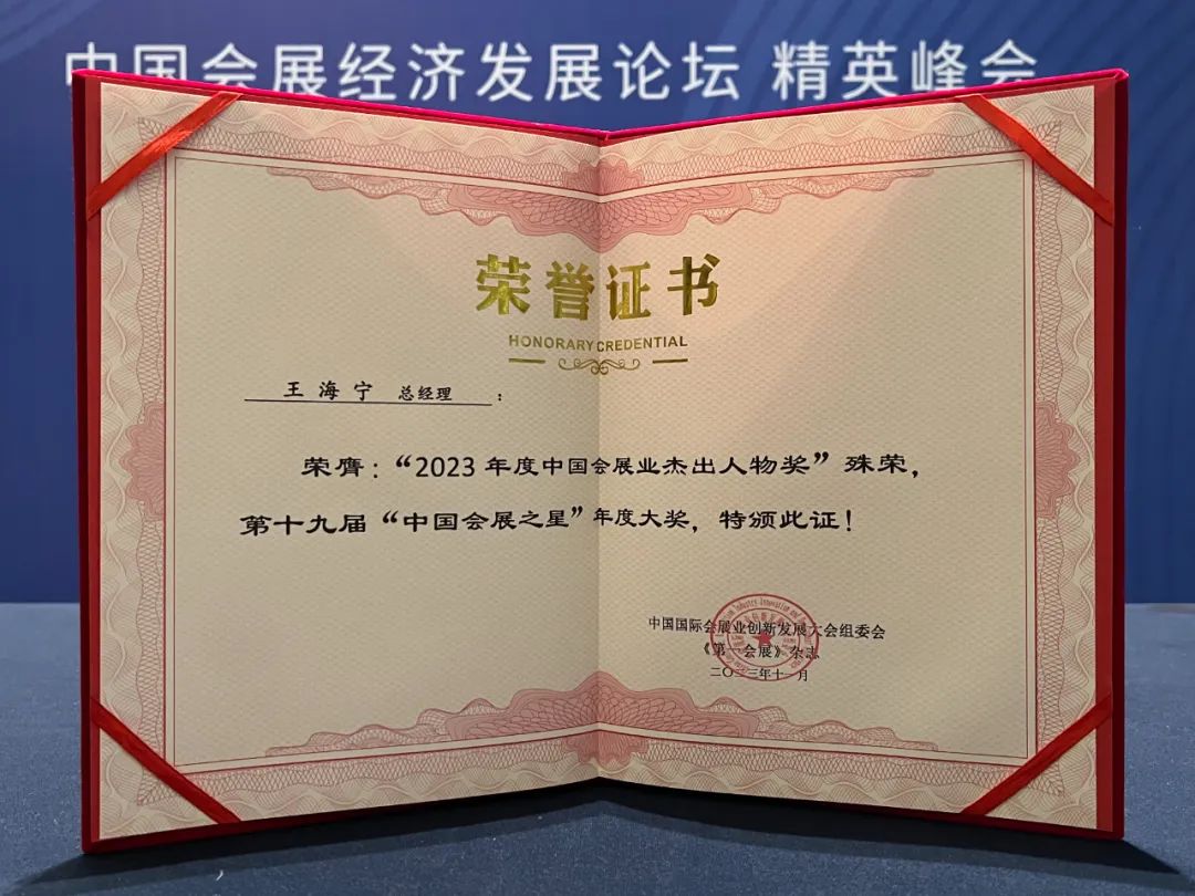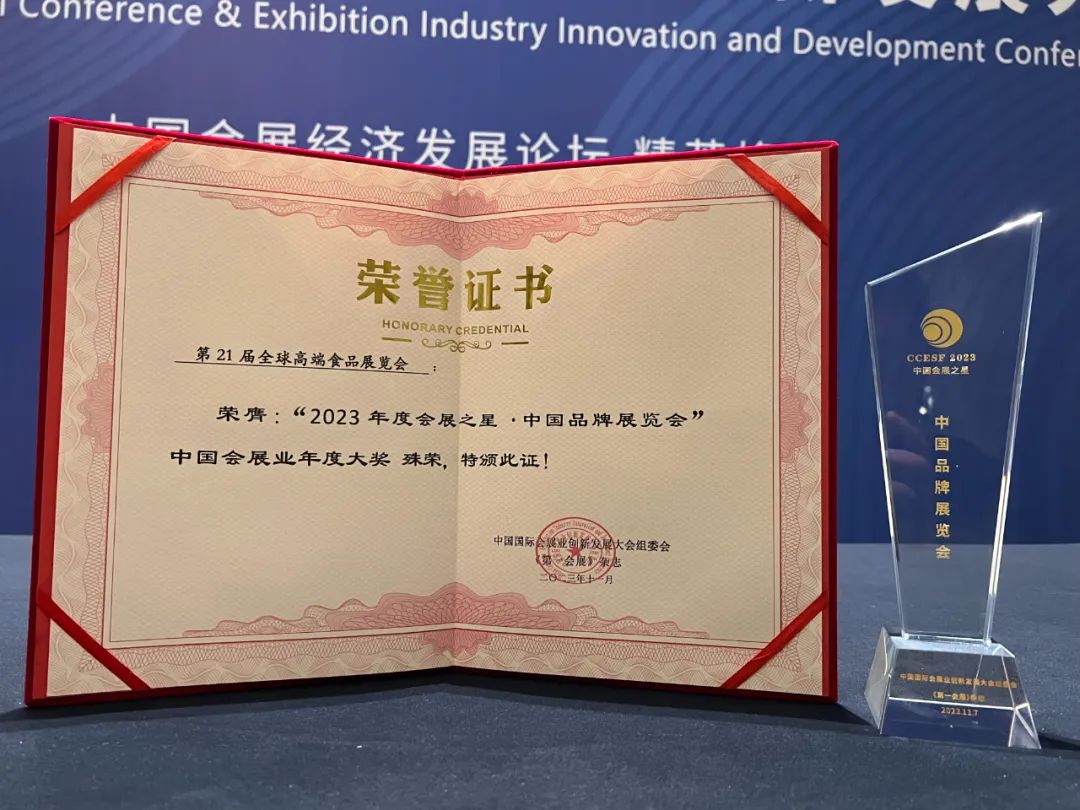 值得关注的是,经过全国会展城市、行业协会、知名专家、权威机构等长达三个月的推选与评判,由龙品锡展览主办的“全球高端食品展览会(全食展)”,成功斩获“2023年度会展之星·中国品牌展览会”中国会展业年度大奖;北京龙品锡展览有限公司总经理王海宁,荣获“2023年度中国会展业杰出人物奖”、第十九届“中国会展之星”年度大奖。