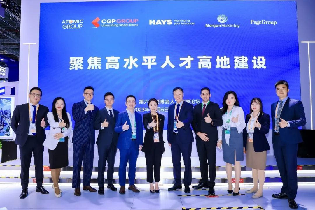 2023年11月6日,CGP(仕卿人力)、Atomic Group(岱澳人才)、Hays(瀚纳仕)、Page Group(米高蒲志)、Morgan McKinley(摹根麦肯立)5家国际知名人力资源服务机构共同聚焦“高水平人才高地建设”主题,开展了一场全球人才战略分享的主题活动。瀚纳仕、米高蒲志、摹根麦肯立均成立于英国,岱澳集团成立于澳大利亚,仕卿人力目前在全球设有20家办公室。这5家具有国际化背景的猎头公司结合各自专注领域和国别特点,在进博会现场携手带来了一场精彩分享。