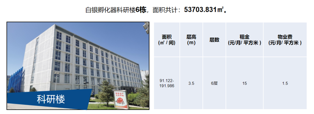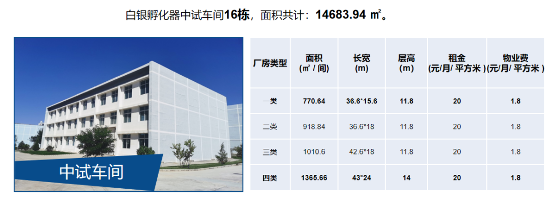 白银科技企业孵化器是甘肃省科技厅和白银市政府共建的科技企业孵化器基地,位于白银国家高新技术产业开发区,成立于2012年3月,占地面积130亩,孵化场地面积8.8万平方米。
