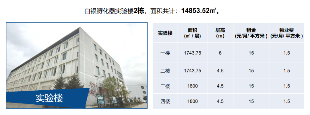 科研楼、实验楼场地实行免一年优惠政策,第二年起全额收取房租。