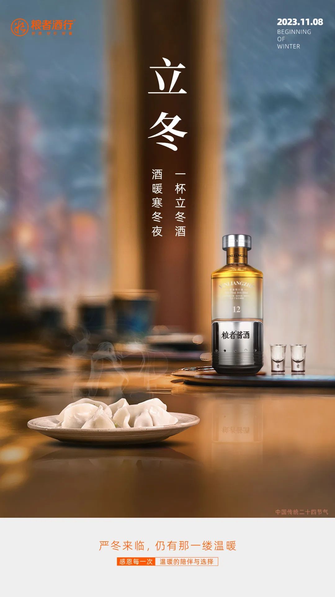 风把秋的斑斓藏于大地,吹走了夏日的浮躁,带来冬日的凛冽。立冬时节,四季轮回,蕴含着生生不息的希望,北方已经下起了雪,越是寒冷的日子越想靠近温暖,一杯白酒入喉,全身暖意洋洋,顿觉心情舒畅。