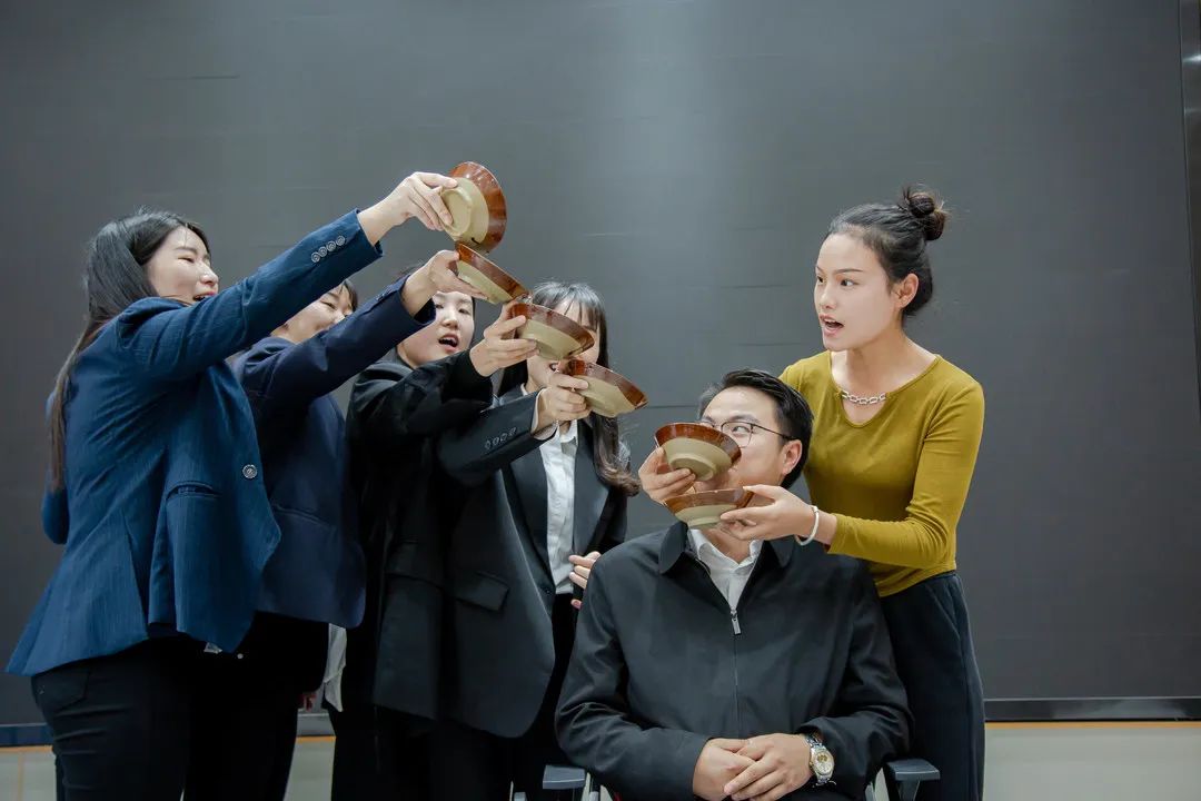 老师们亲切指导,耐心教学,员工们学习劲头高昂。苗家的牛角杯举起来哎。啊,啊阿哎……举呀嘛 举呀嘛举起来……整个会议室余音绕梁,其乐融融。