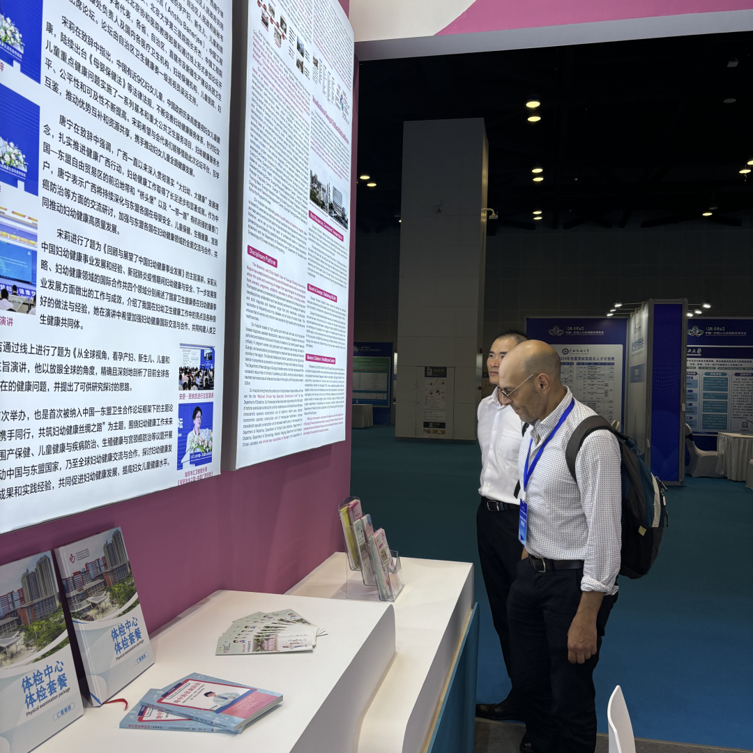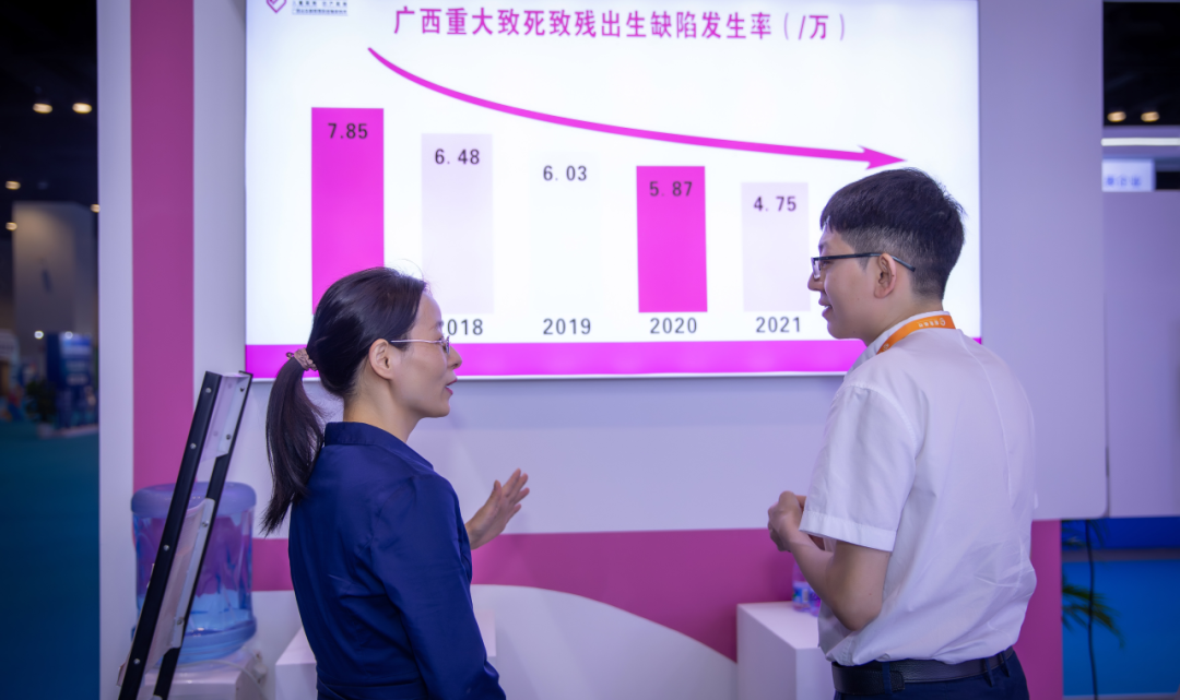 众多参会嘉宾、国际友人、异业同行等驻足自治区妇幼保健院展区观摩、咨询,寻求合作。