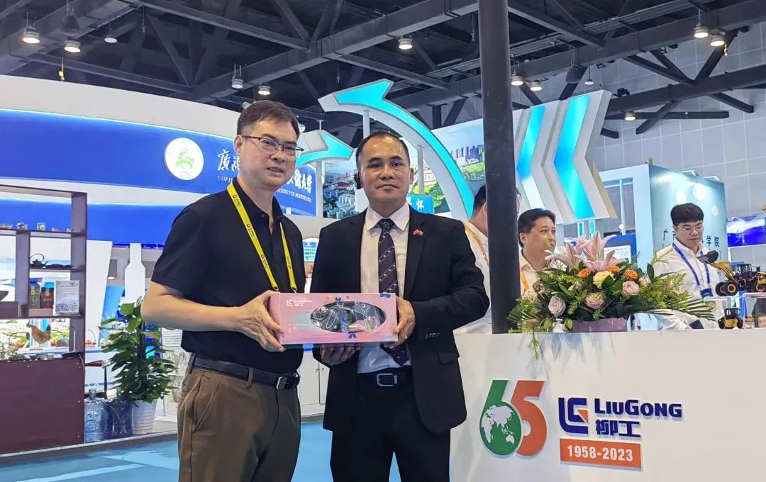 泰国职业教育委员会副秘书长维塔瓦特-潘贾马瓦特巡馆后,又专门回到柳工的展位上,详细了解柳工展出的10种工程机械,以及柳工与柳职协同出海,在泰国进行技能人才培养的相关情况。