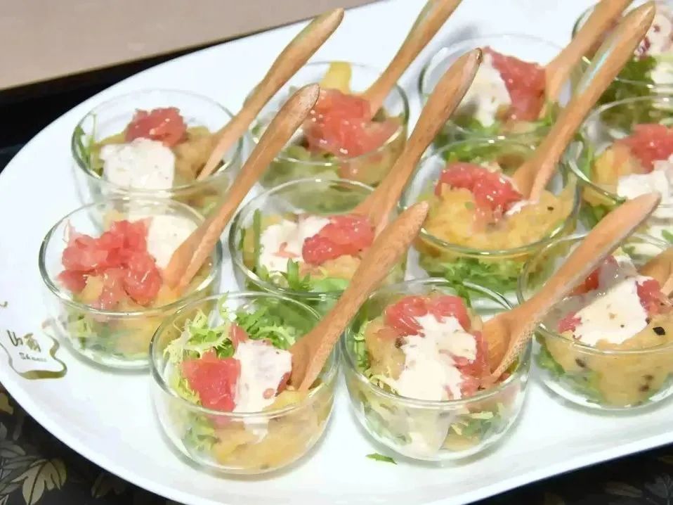 2023上海进博会.山西之夜的冷餐会,再次复制了2019外交部冷餐会的经典美食。曾经参加外交部冷餐会的带队领导——省机关事务管理局局长毛益民、梧桐公寓总经理王强峰亲自领队出征,曾经参加外交部冷餐会的烹饪名厨——王云浩、王福荣、李晨伟、刘涛、靖中宽、王志强、段建明、赵国亮、孟庆石、闫润明、张彦伟、杨刚、武钢林等带领28位烹饪名厨,精心制作的24道晋菜晋味冷餐美食,再次惊艳了各界嘉宾!王张龙的山西面食技艺绝活表演再次获得国内外在场嘉宾的热烈掌声!