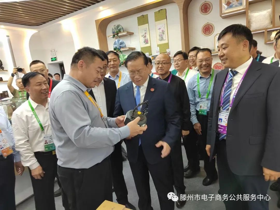 11月5日,湖北省委副书记、省长王忠林,枣庄市委副书记、市长翟军,枣庄市政府副秘书长、市商务局局长、市投资促进局局长岳增波来到进博会场馆,考察山东老字号暨非遗文化体验馆,对滕州参展企业及产品给予高度评价。