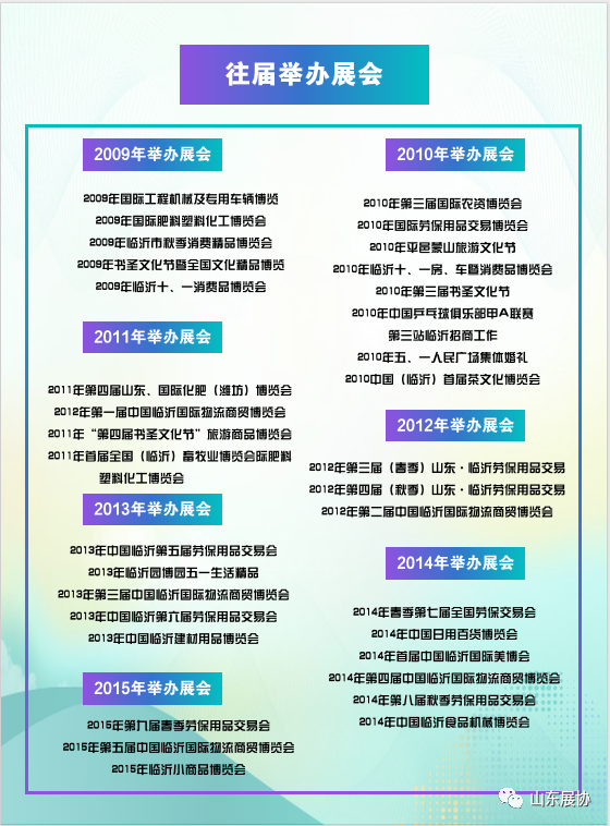 山东永森国际会展有限公司成立于2016年原临沂市泳皓会展服务有限公司是经临沂市工商行政管理局批准成立的专业性会展服务公司。