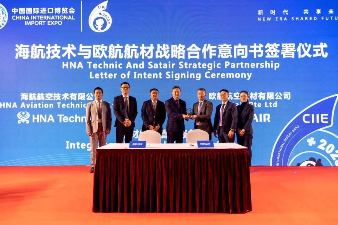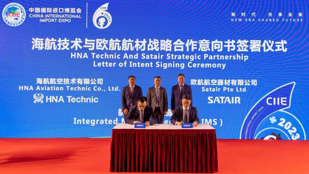 2023年11月7日,受海南省交通厅邀请,海航航空集团旗下海航技术与海南航空作为第六届进博会海南交易团成员参加在上海举办的中国国际进口博览会。大会上,海航技术与空中客车服务公司、商业航空售后市场全球领导者Satair(以下简称“欧航航材”)签署了一份战略合作意向书,欧航航材将为海航技术提供全面的消耗件航材综合管理服务。