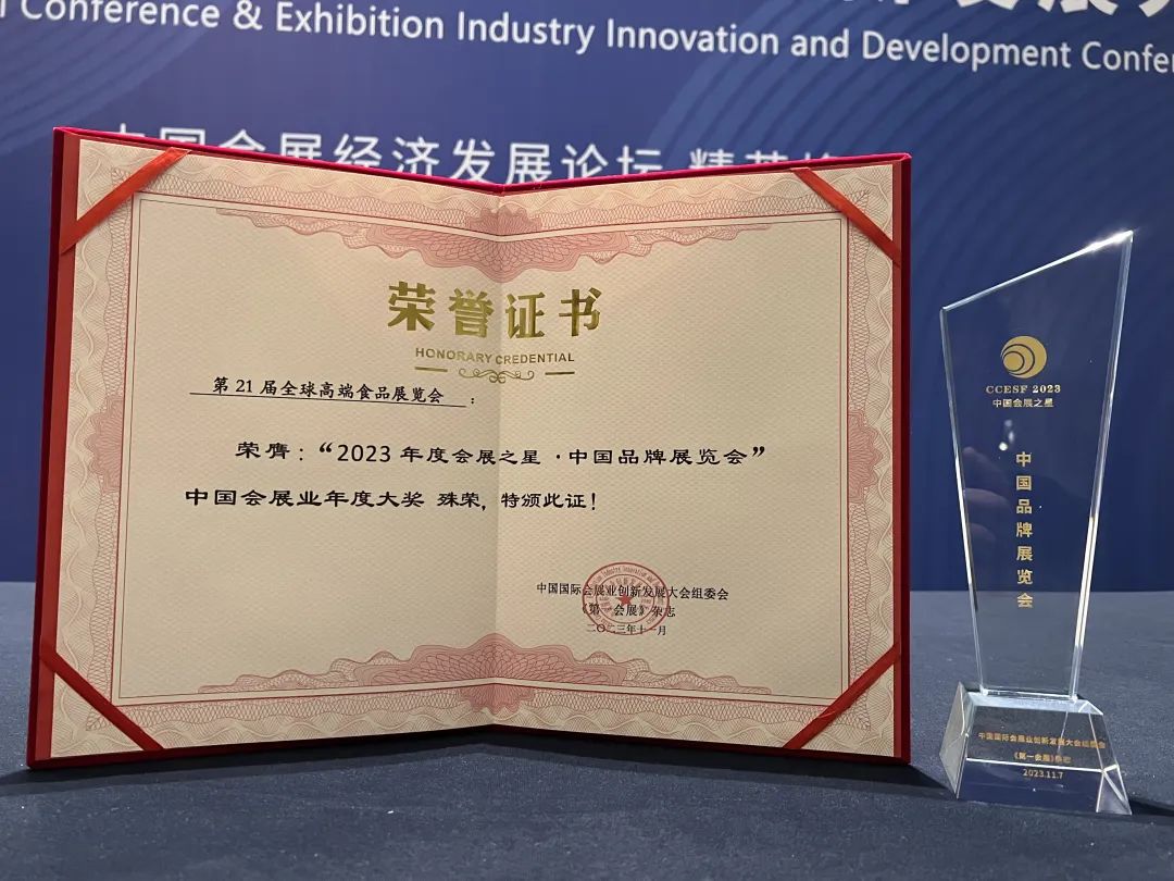 值得关注的是,经过全国会展城市、行业协会、知名专家、权威机构等长达三个月的推选与评判,由龙品锡展览主办的“全球高端食品展览会(全食展)”,成功斩获“2023年度会展之星·中国品牌展览会”中国会展业年度大奖;北京龙品锡展览有限公司总经理王海宁,荣获“2023年度中国会展业杰出人物奖”、第十九届“中国会展之星”年度大奖。