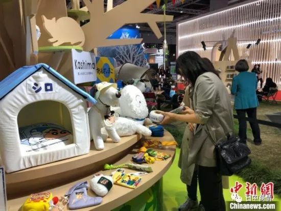 第六届进博会日本贸易振兴机构(JETRO)展区,宠物用品吸引参观者。 王潇婧 摄