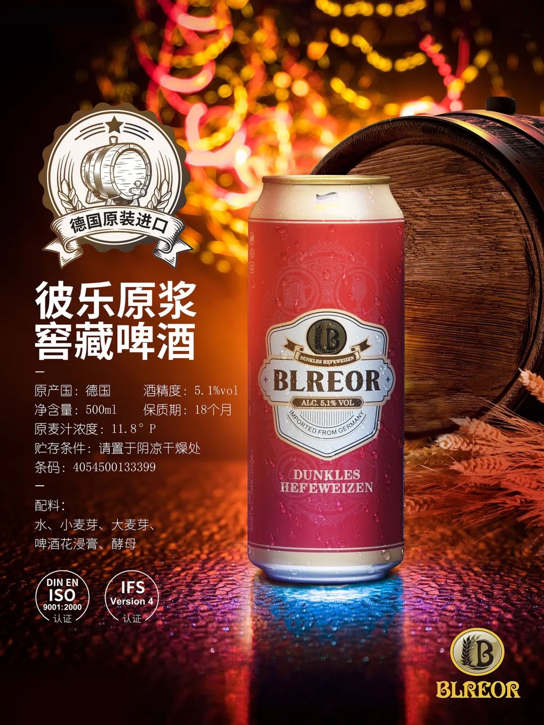 彼乐小麦啤酒500ml 酒精度:5.2%vol,原麦汁浓度:11.8°P
