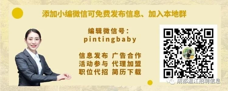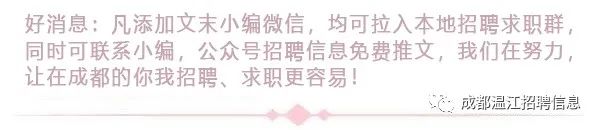 注意:成都20个区/县/市招聘公众号均已覆盖,查找相关区域信息可到区域招聘账号查看。