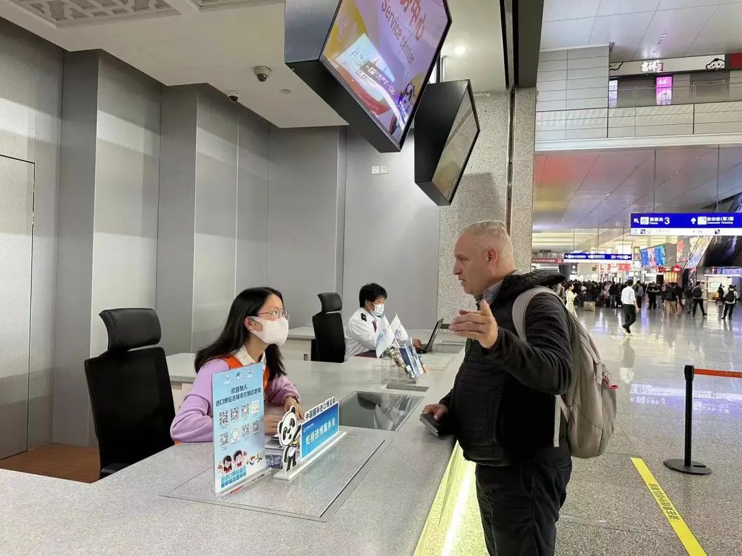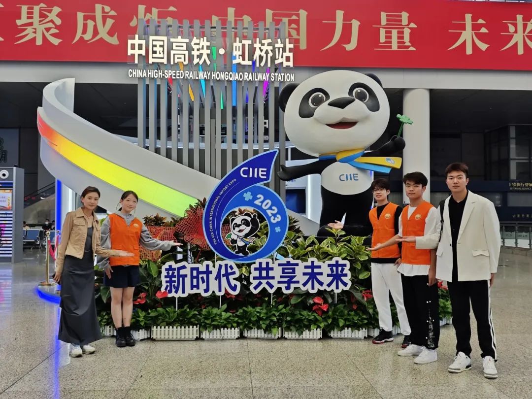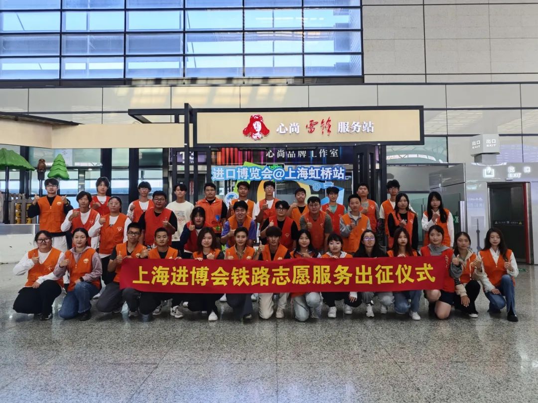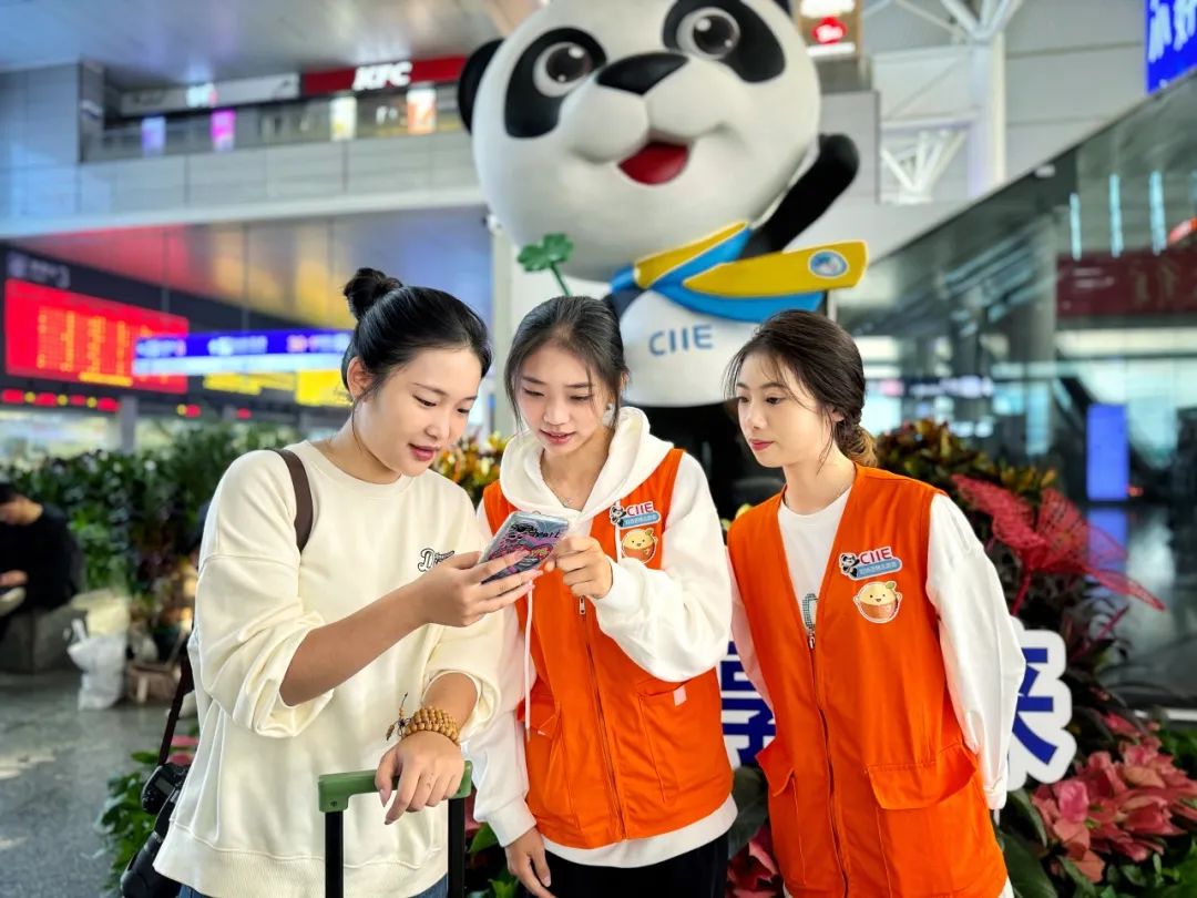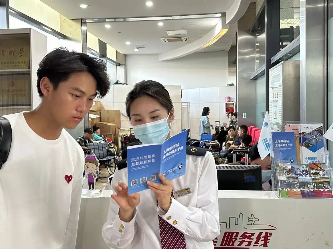 进博会期间,铁路志愿者们为往来宾客提供周到的服务。 蒋辰奇 摄